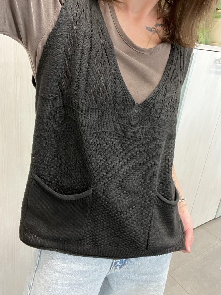 Весенне-осенний винтажный вязаный жилет, женский свободный свитер без рукавов с v-образным вырезом и двойным карманом, вязаный жилет, верхняя одежда — купить товар онлайн с бесплатной доставкой по всему миру!