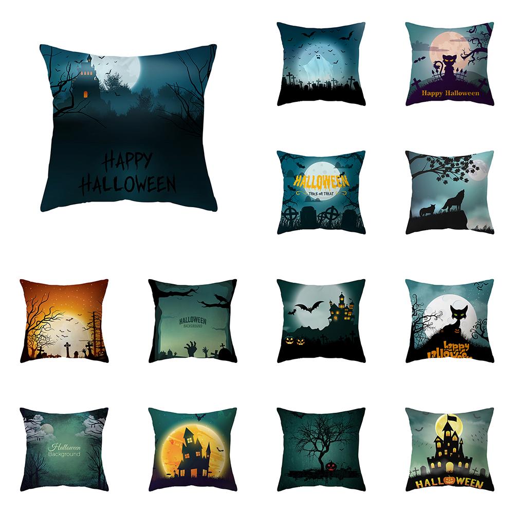 Страшная тема Хэллоуина, тыква, летучая мышь, черный кот, принт, чехол для подушки, домашний декор, декор для дивана, наволочка — купить товар онлайн с бесплатной доставкой по всему миру!