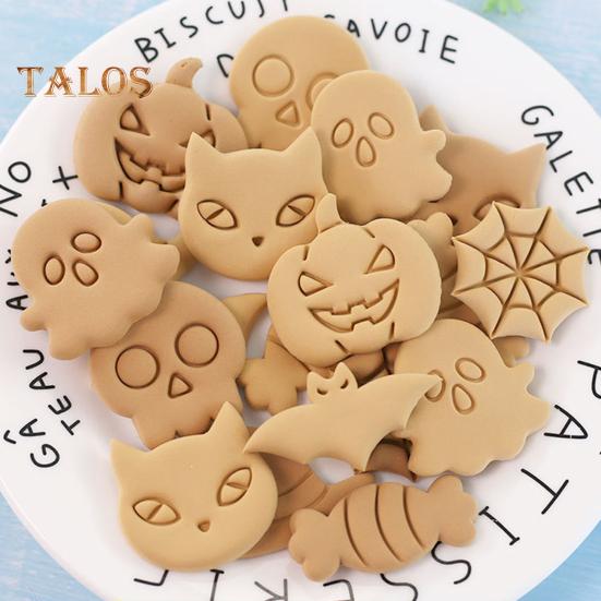 8 шт./компл., формочка для печенья на Хэллоуин, пищевой легкосъемный пресс, сделай сам, тыква, призрак, череп, летучая мышь, машина, машина для приготовления печенья, набор форм, кухонные инструменты для выпечки