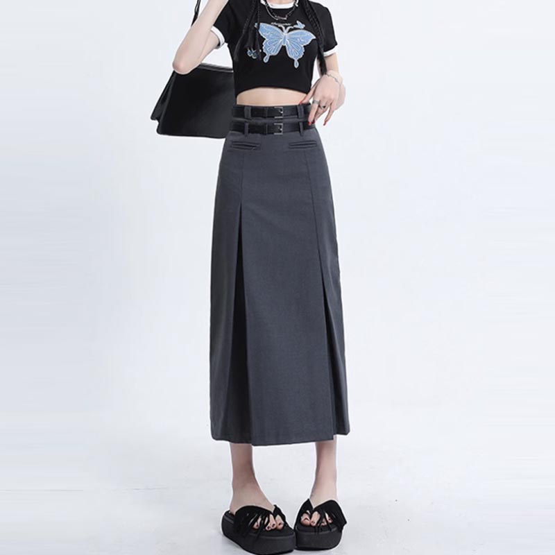 Юбка-миди с высокой талией для женщин, осенняя повседневная плиссированная длинная юбка трапециевидной формы, серая, черная, модная одежда в корейском стиле, женская Y2k — купить товар онлайн с бесплатной доставкой по всему миру!