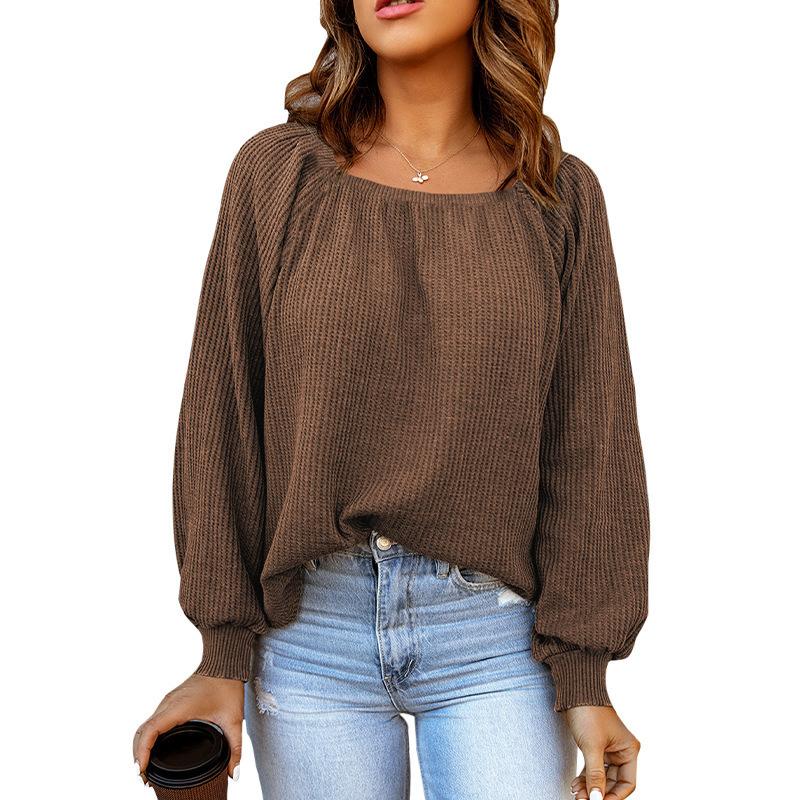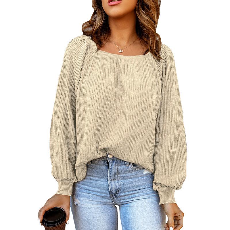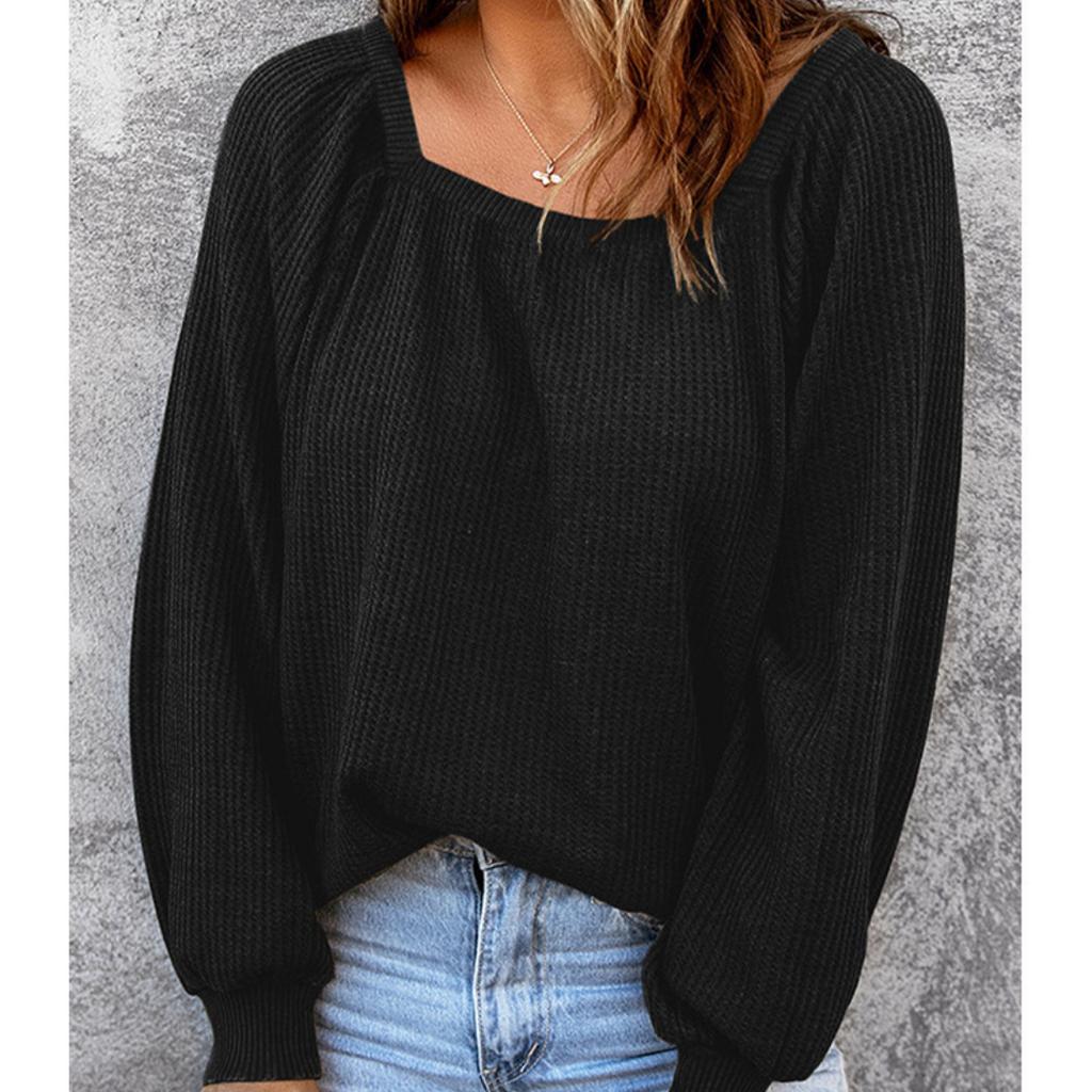 2023 Весенне-осенний женский однотонный свободный повседневный свитер с квадратным воротником