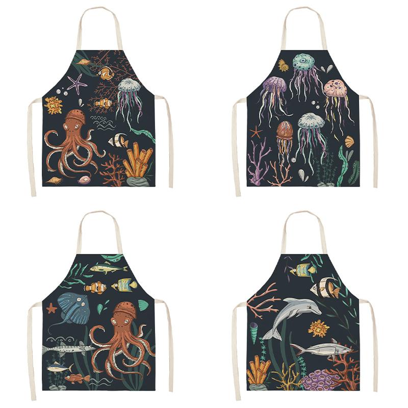 Фартук для кухни, приготовления пищи, выпечки, фартук с принтом морских существ, фартук в виде дельфина, медузы, фартук унисекс, фартук для кафе, раковина осьминога