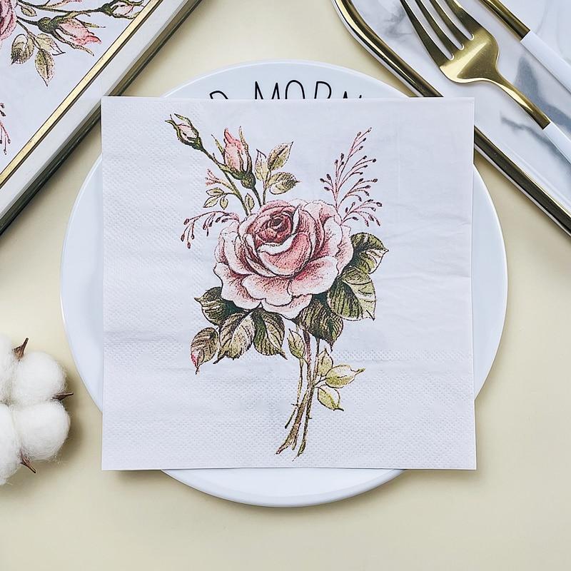Одноразовые салфетки для вечеринок двухслойные, 20 шт./упак., винтажные розы на белом