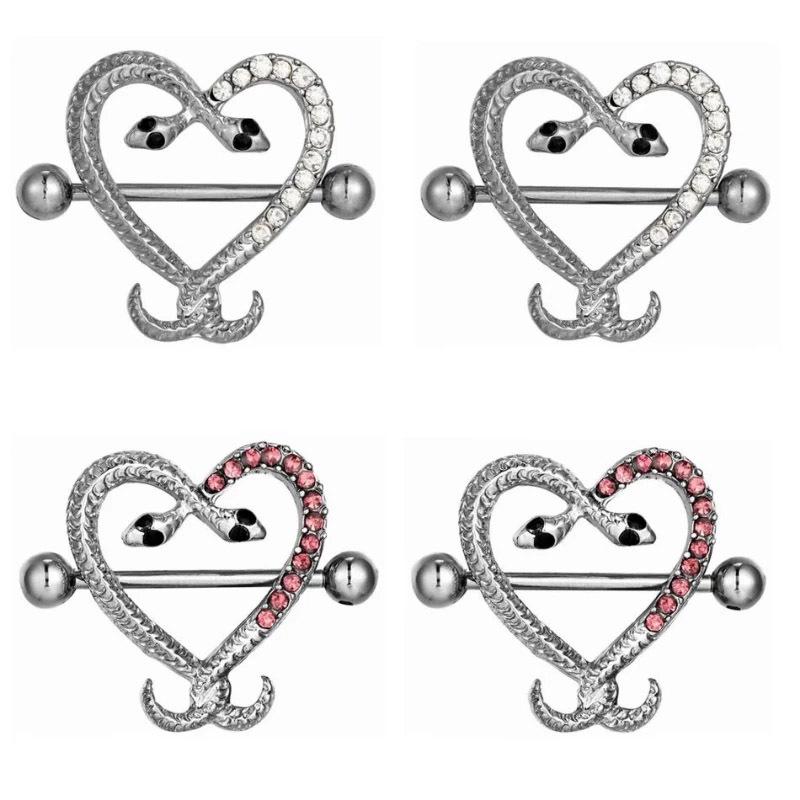 Молочное кольцо из нержавеющей стали Шуан Змея Персиковое сердце Молочный гвоздь Женские ювелирные изделия из нержавеющей стали