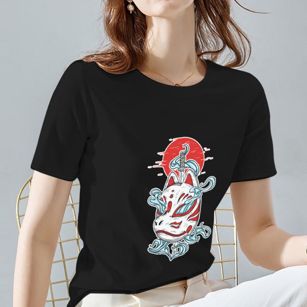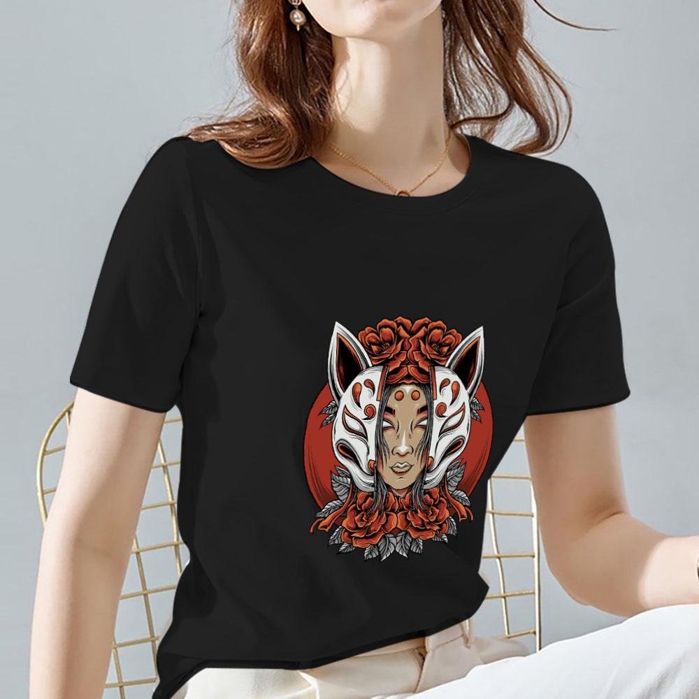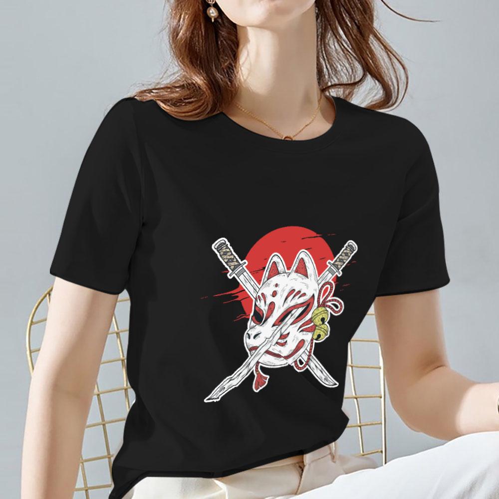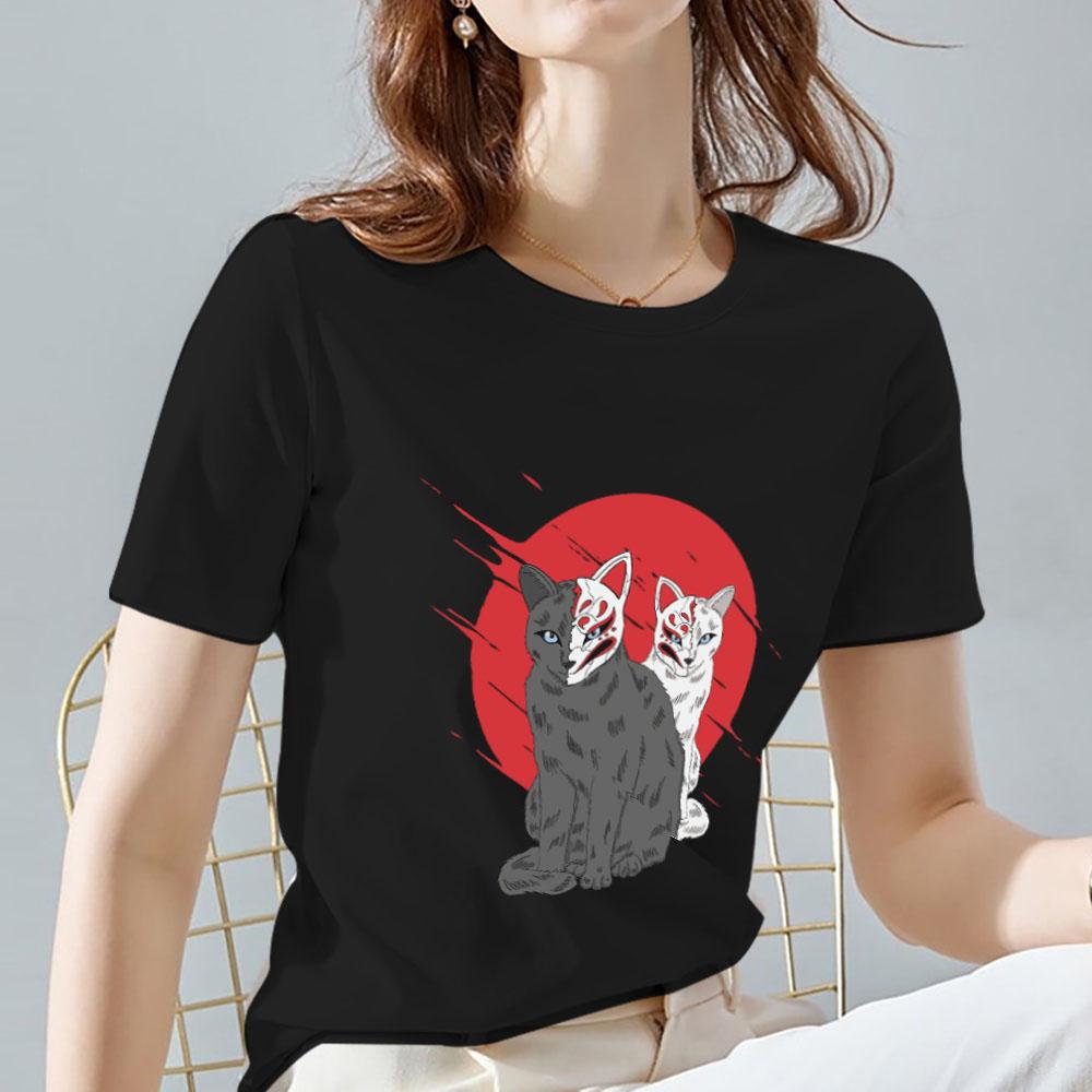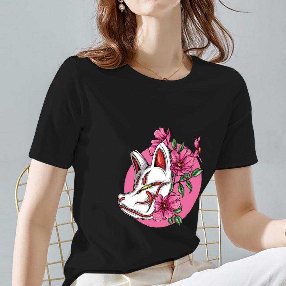 Модная футболка в японском стиле, повседневная одежда в стиле Харадзюку с круглым вырезом и принтом вишневого цвета, с изображением лисы и вишни