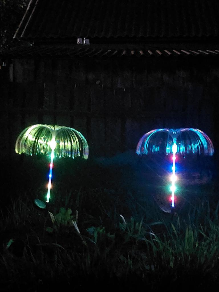 Если день солнечный, то эти зонтики всю ночь очень красиво светятся переливаясь разными цветами. Три дня у нас идёт дождь и свечение очень слабое и кратковременное. Но, в принципе, мне очень нравится.