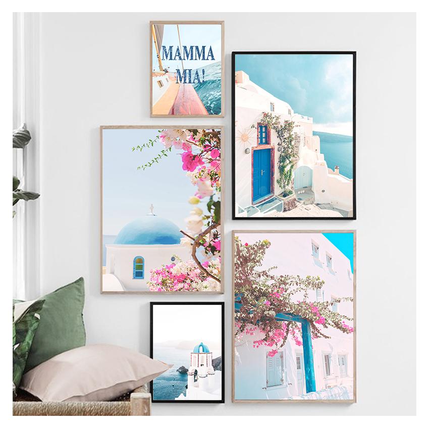 Санторини, греческий остров, туристический постер, минималистичный настенный художественный холст, картина, летняя Греция, принты, Mamma mia, декор для общежития колледжа