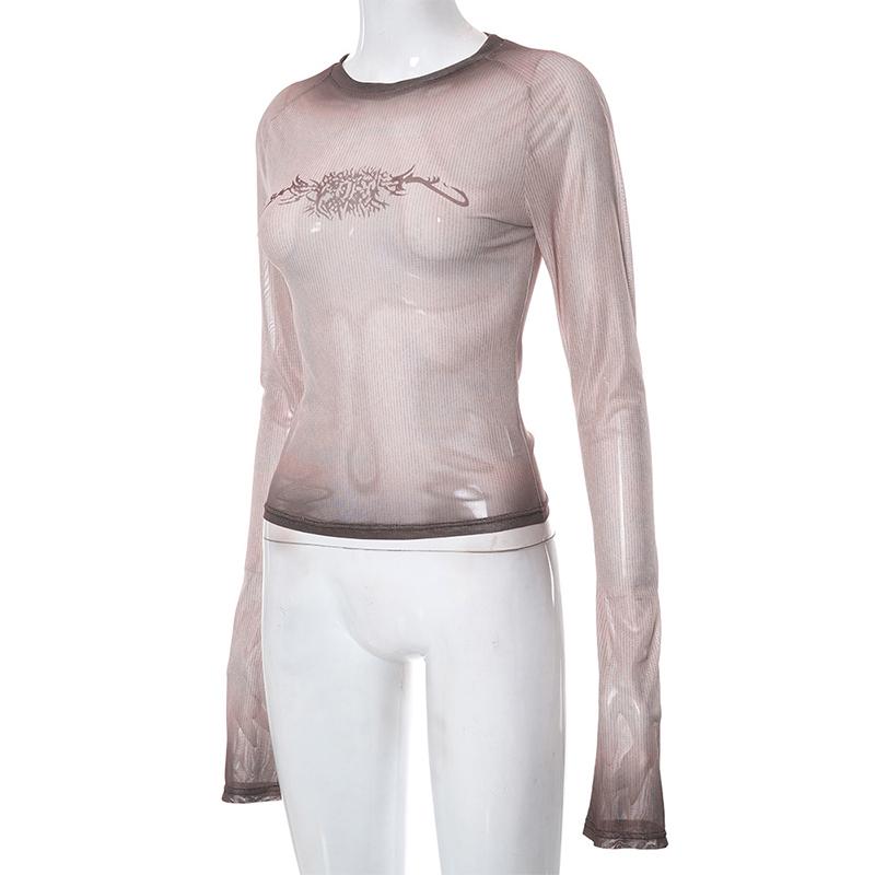 Киберготическая сетчатая прозрачная футболка Techwear, модная уличная одежда Y2k, укороченные топы с длинными рукавами, облегающий женский сексуальный наряд