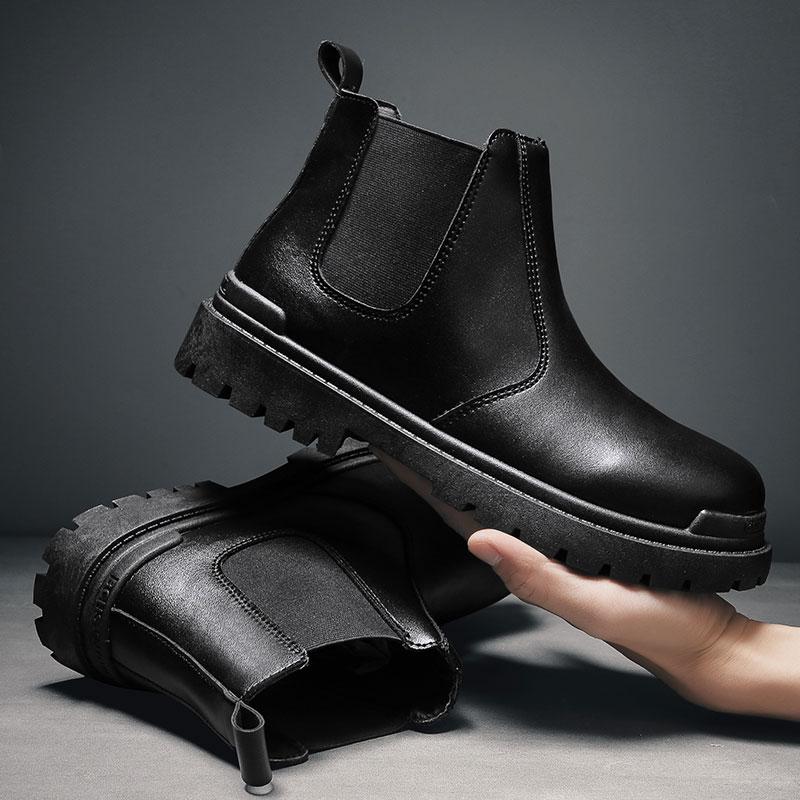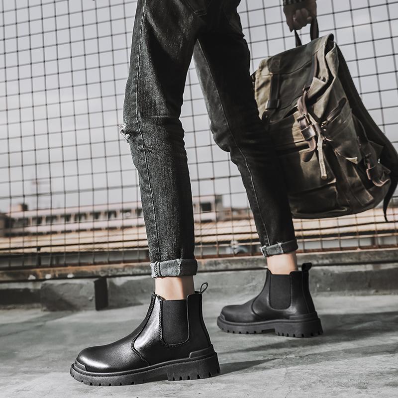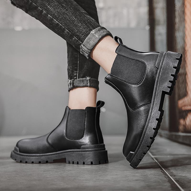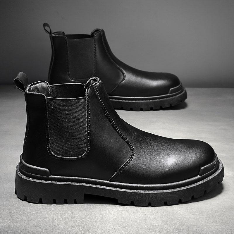 Модные мужские ботинки челси, осенне-весенние рабочие ботинки на платформе с высоким берцем в стиле ретро, студенческие прогулочные черные ботинки, повседневная обувь