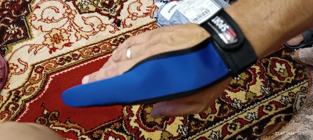 Пришел во время. Хорошая вещь для дальних забросов. Материал плотный. На запястье фиксируется липучкой, удобно.