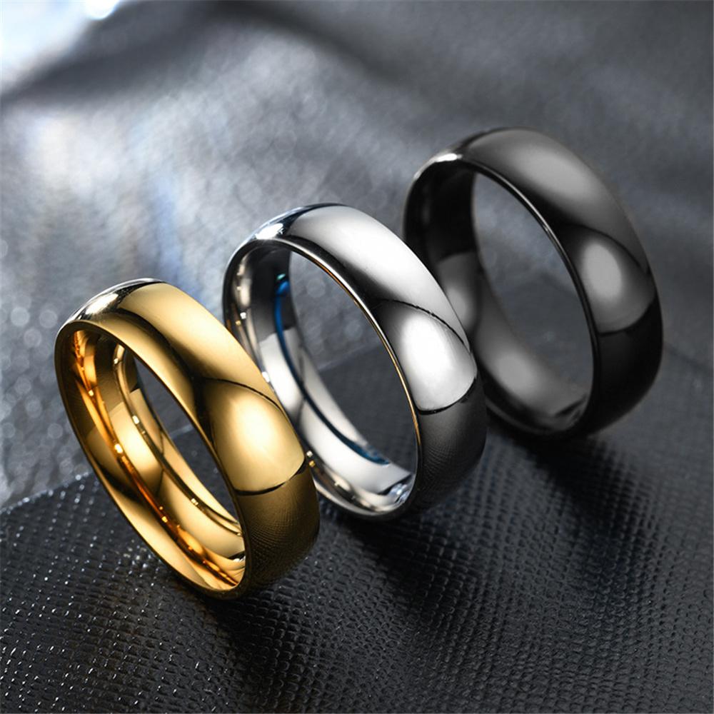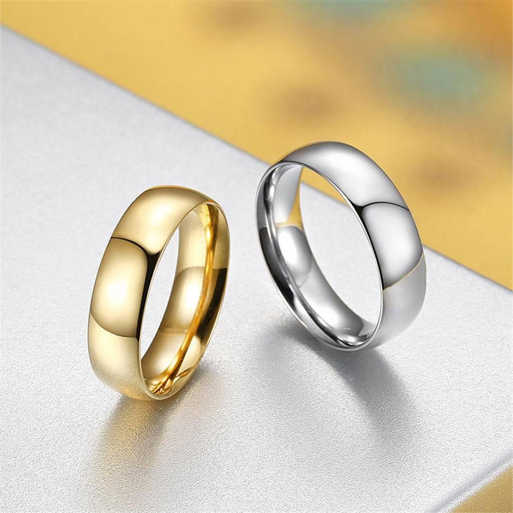 Простое кольцо 6 мм, классическое гладкое золотого цвета, обручальные кольца из нержавеющей стали для женщин и мужчин, оптовая продажа ювелирных изделий