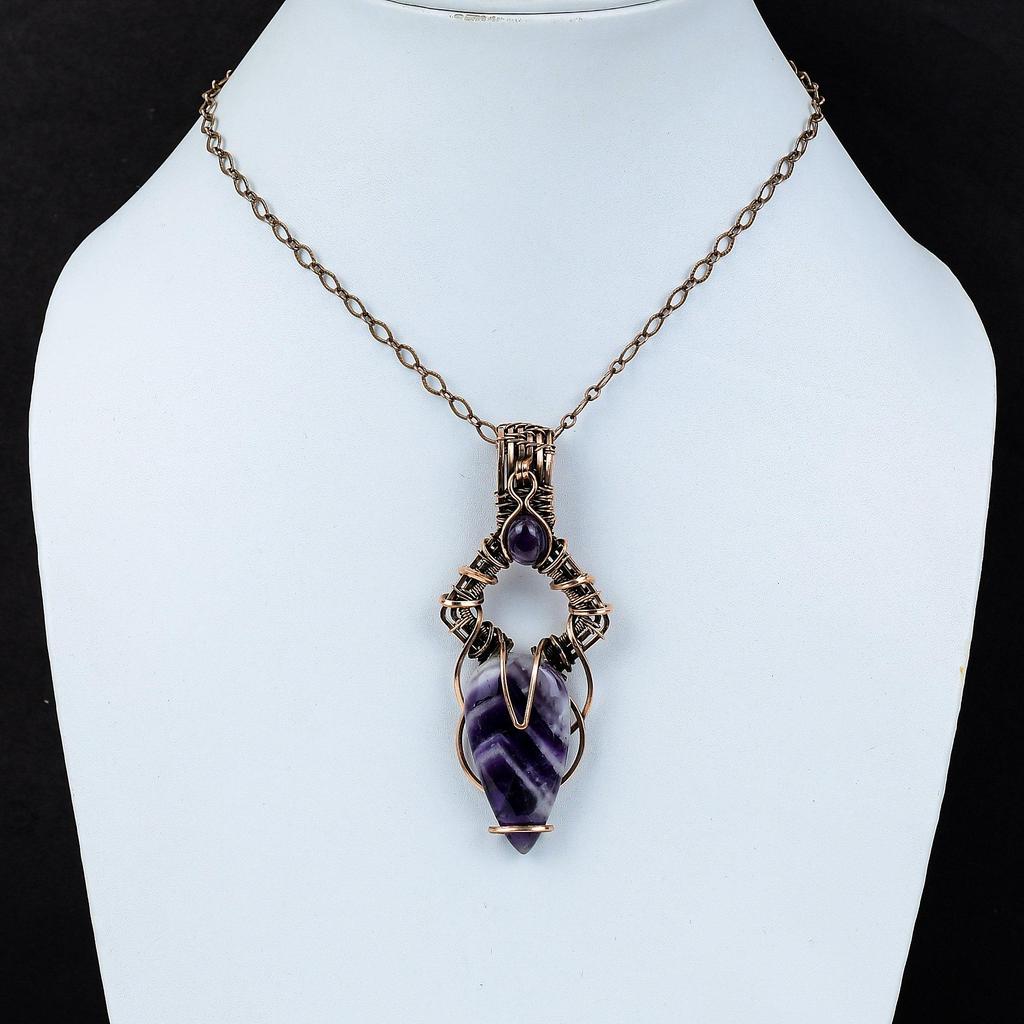 Шалфей Аметист Драгоценный камень Чистая медная проволока Обернутая подвеска ручной работы Ювелирные изделия