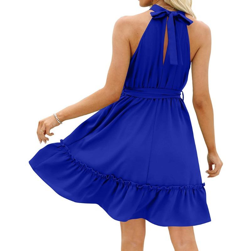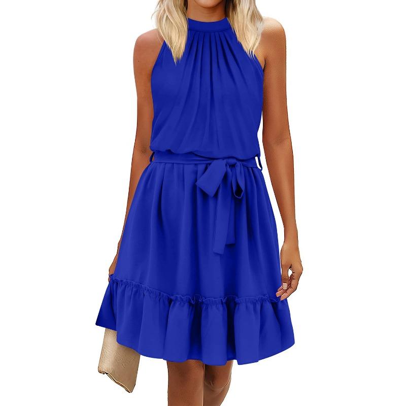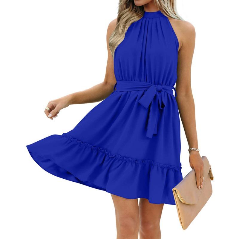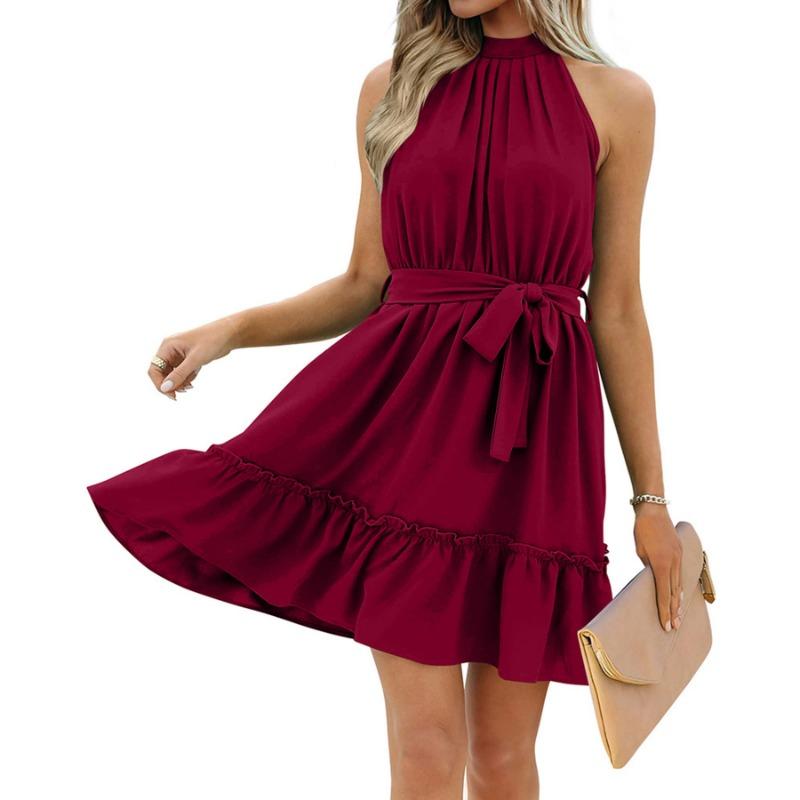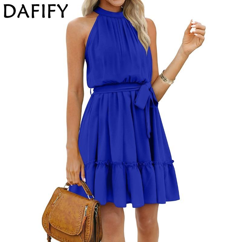 DAFIFY Женская мода лето весна однотонный принт без рукавов с высоким воротом и высокой талией повседневные платья