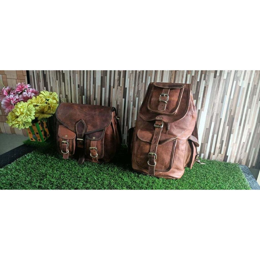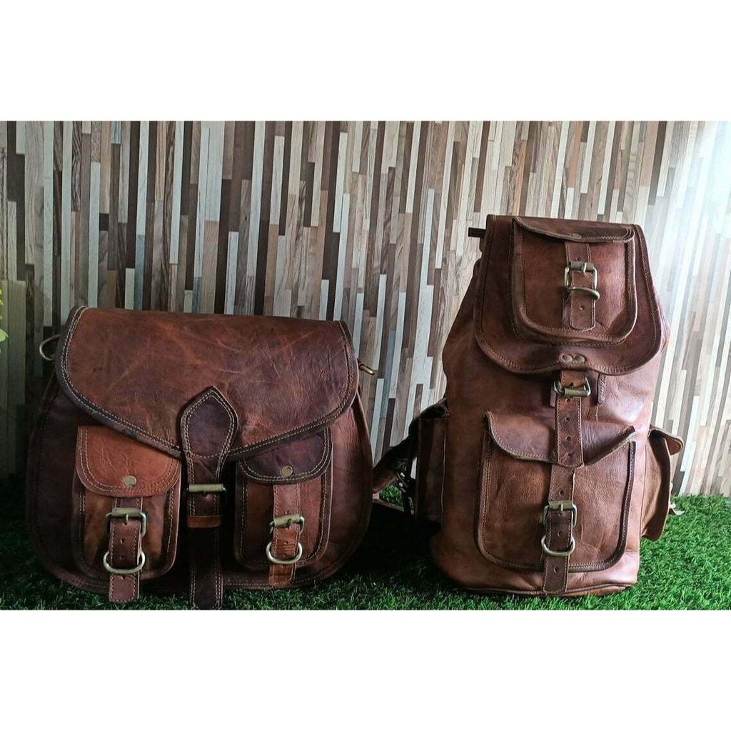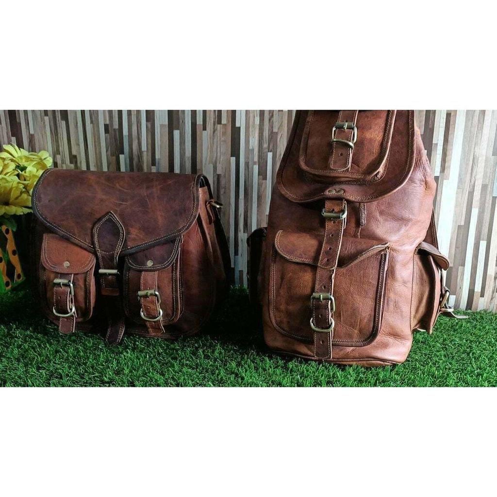 Женский рюкзак с двумя сумками из натуральной винтажной кожи