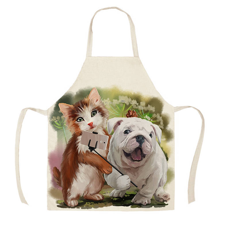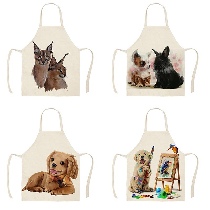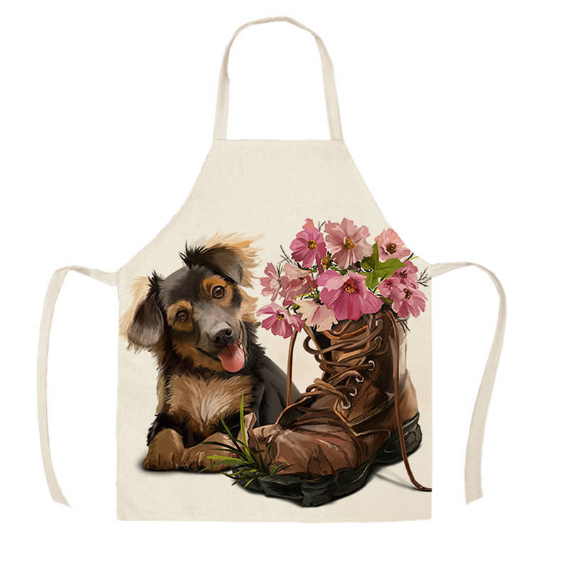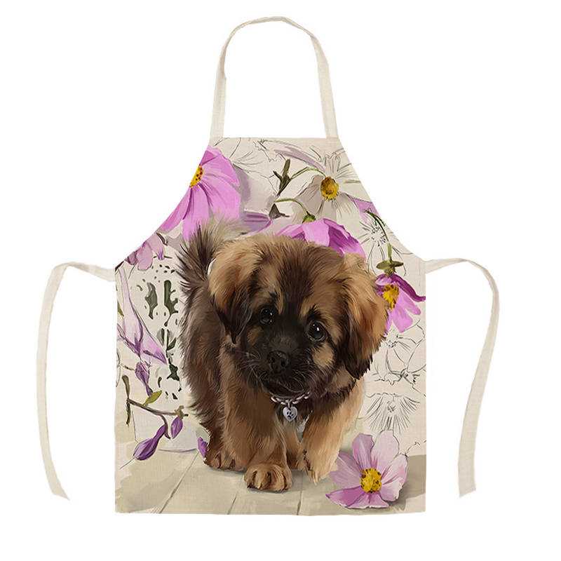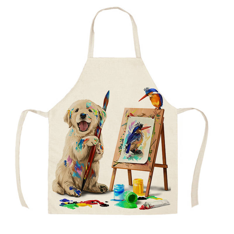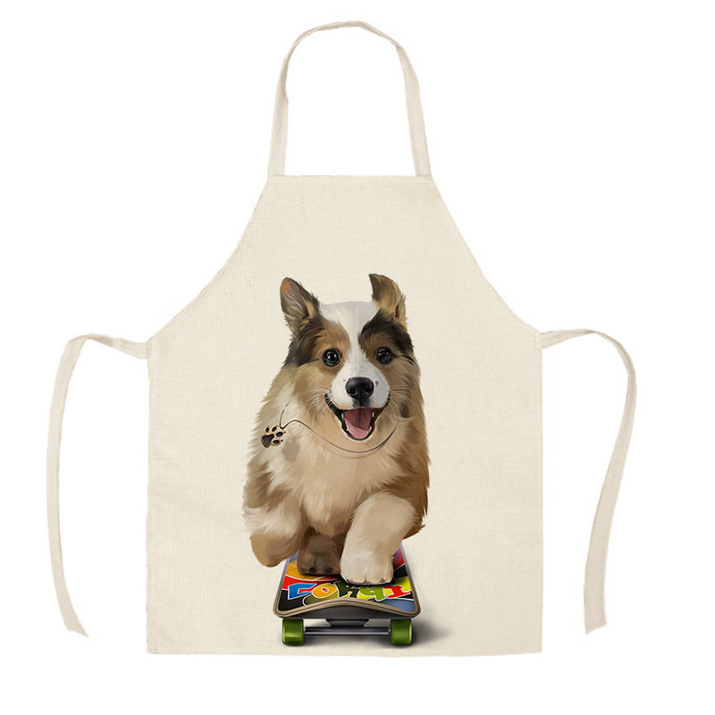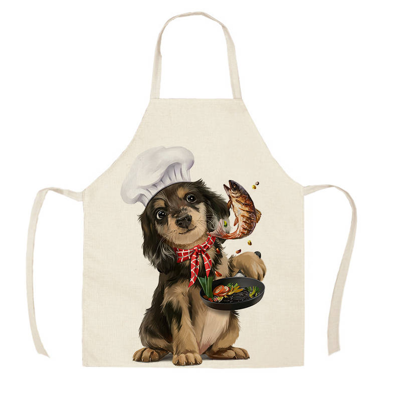 Фартук шеф-повара для выпечки и приготовления пищи, милый кухонный фартук с собачьим принтом, льняной фартук с защитой от пятен, мужской и женский фартук для уборки дома