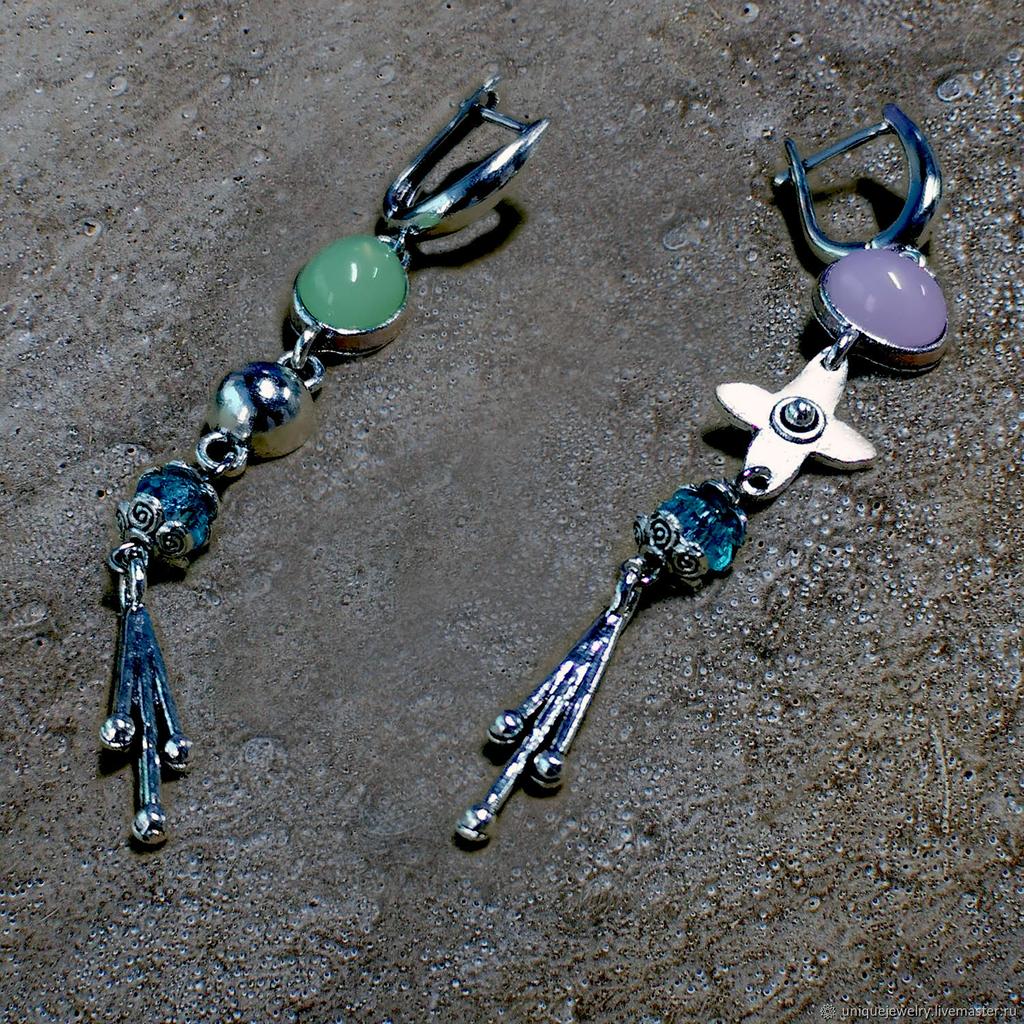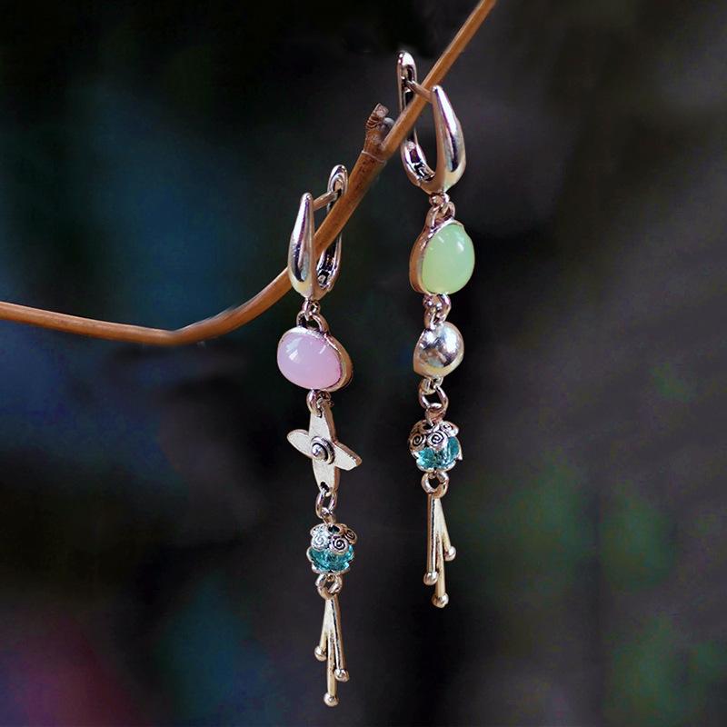 Винтажные серебряные длинные серьги с кисточками из красного и зеленого камня