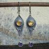 Серьги ручной работы с синим лунным камнем, винтажные серьги из старого металла, фиолетовые серьги с каплями воды
