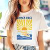 (Азиатский размер) Футболка с буквенным принтом, милая женская футболка с принтом для пляжного отдыха, женская одежда, повседневная модная футболка с короткими рукавами, женская футболка с графическим рисунком