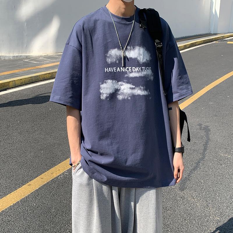 IELGY Футболка с короткими рукавами, мужская летняя тенденция, свободный и универсальный простой топ в гонконгском стиле