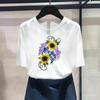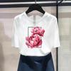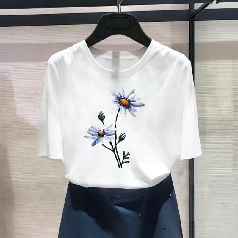 (Азиатский размер) Модный принт с цветочным принтом, стильная тенденция, милая женская повседневная футболка, повседневная женская футболка с коротким рукавом и графическим принтом