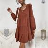 Весенние и осенние женские платья, модные короткие однотонные платья с длинными рукавами