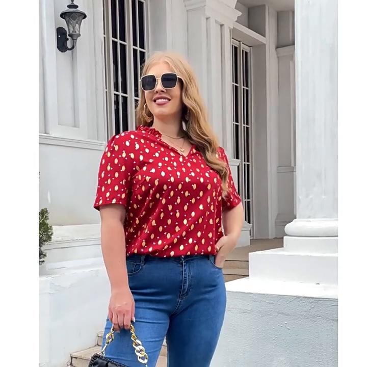 GMXIA Женские модные повседневные футболки и топы с v-образным вырезом и короткими рукавами с принтом в горошек — купить товар онлайн с бесплатной доставкой по всему миру!