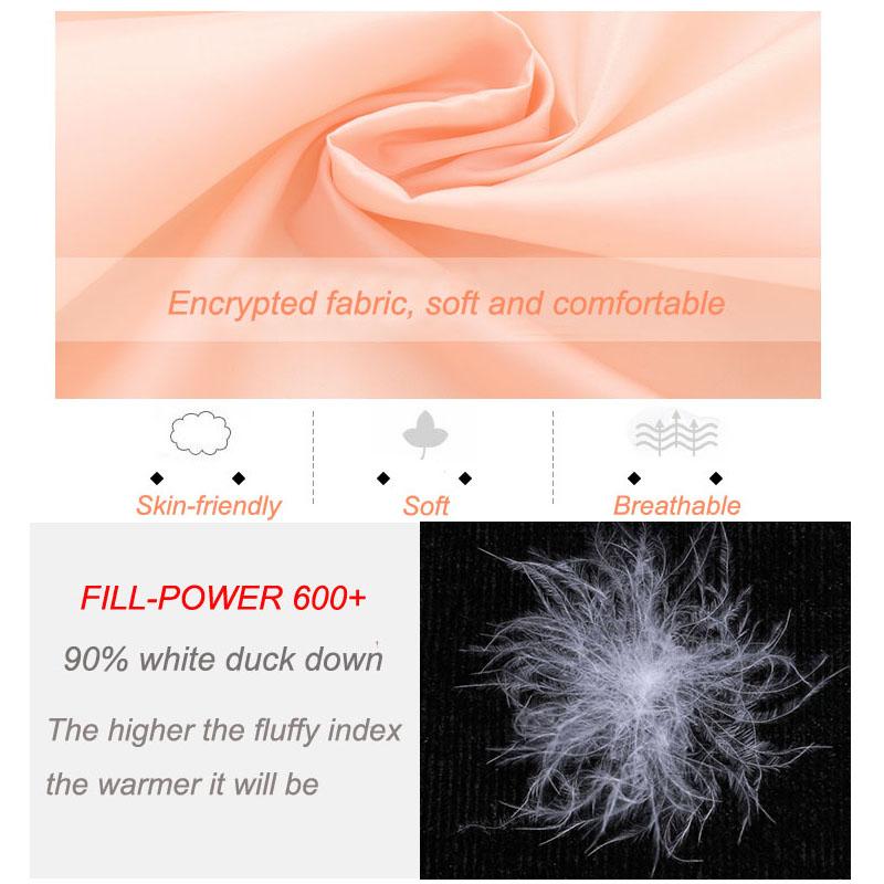Материал: Ветрозащитный и водонепроницаемый внешний слой из полиэстера, наполнитель примерно 90% белый утиный пух