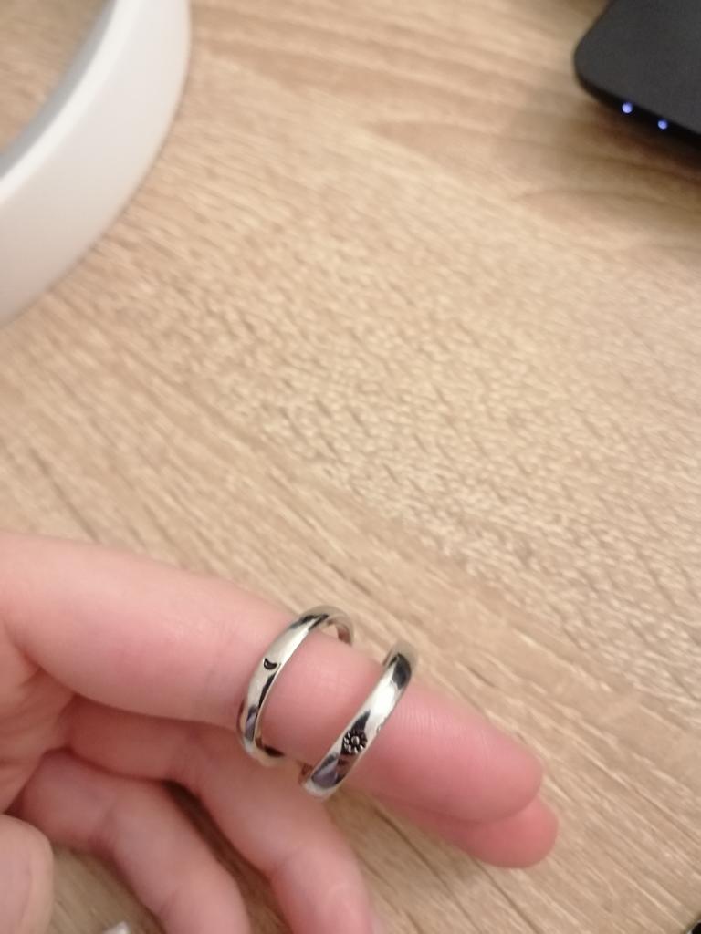 Парные кольца по факту гладкие с обеих сторон, то есть нет волнистых линий, как на фото. Из за этого смотрятся сильно проще, чем ожидалось. И рисунок Луны и Солнца еле заметен.
