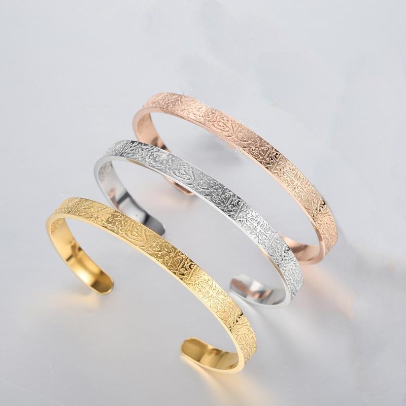 Исламский браслет-манжета из нержавеющей стали для женщин и мужчин, изысканные ювелирные изделия, аятул Курси Сутра, амулет, мусульманский подарок
