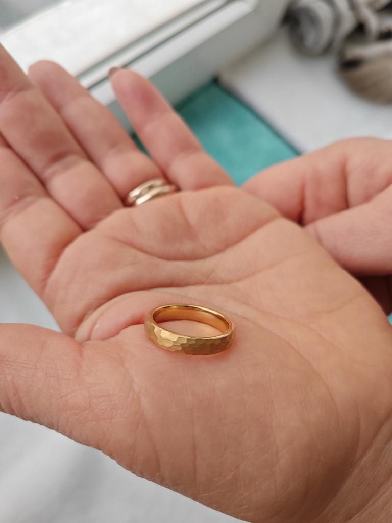 6 мм 4 мм 18-каратное позолоченное кованое кольцо из карбида вольфрама, куполообразная удобная посадка, обручальное кольцо, размер 5-12