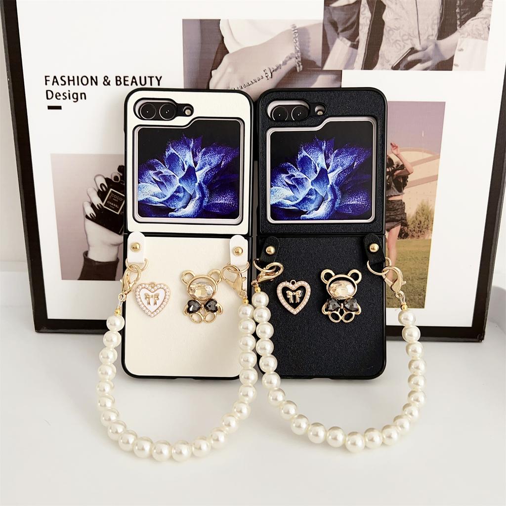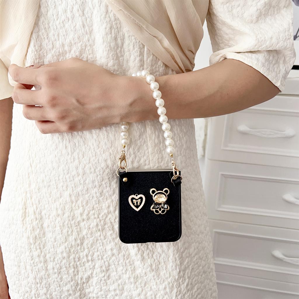 Роскошный чехол для телефона с милым мультяшным сердечком, бантом и кроликом, жемчужным браслетом для Samsung Z Flip 5 Z Flip4 Zflip3, противоударная задняя крышка для oppo find N2 Flip
