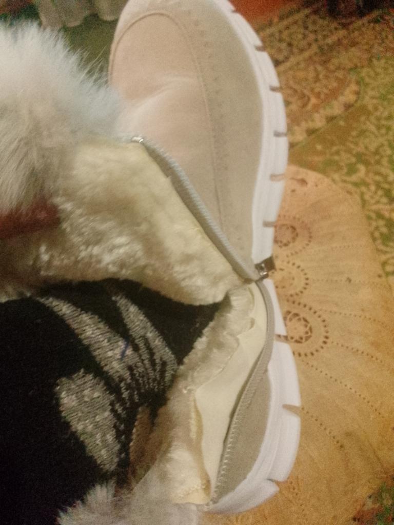 Не возможно снять видео, места нет на телефоне. Но на фото понятно, что показываю. Проживаю в Сибири, до, начала декабря ходить можно, судя по подошве других дутиков с TALUNA , подошва не должна быть скользкой, из за брака минус 2 звезды. Свой размер 39(25,5)- выписываю обувь 42, свободно с носком будет хорошо.