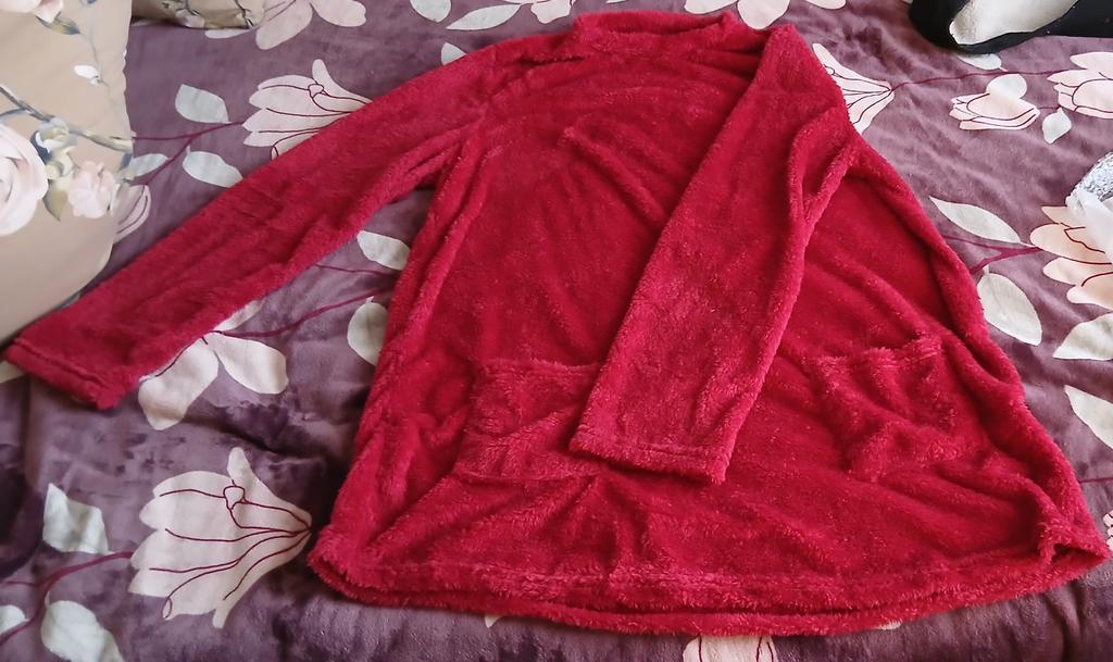 Пришла интересная зимняя кофточка или туничка это?.... Размер подошел,мягкенькая, тепленькая,очень мне пришлась по душе,т.,к я работаю,а у меня в помещении +9 зимой, в морозы иногда еще холоднее, поэтому поддевать под пуховик. Эту кофточку захотела согреть себя любимую,не смотря на ее простой фасон. Но она удлинена,с карманчиками,цвет выписала бардовый,смотрится хорошо. Не знаю,как будет после стирки. Спасибо большое Джум! 😘❤️💥💥💥❄️ Где нелестно отзывались о этой кофточке, я думаю ЦВЕТ КОФТЫ имеет значение,как она будет смотреться просто тряпкой или необычной вещицей в вашем гардиробе.