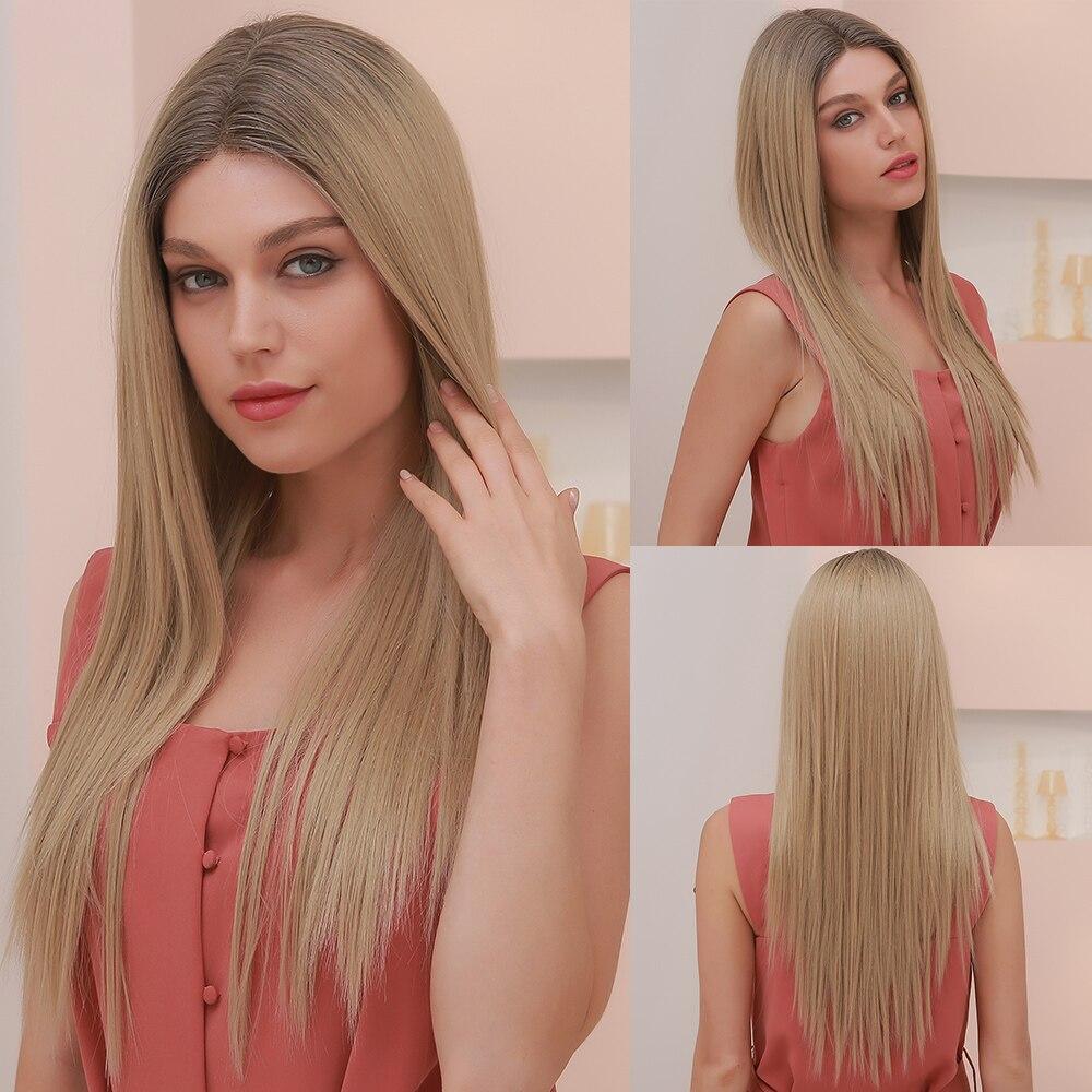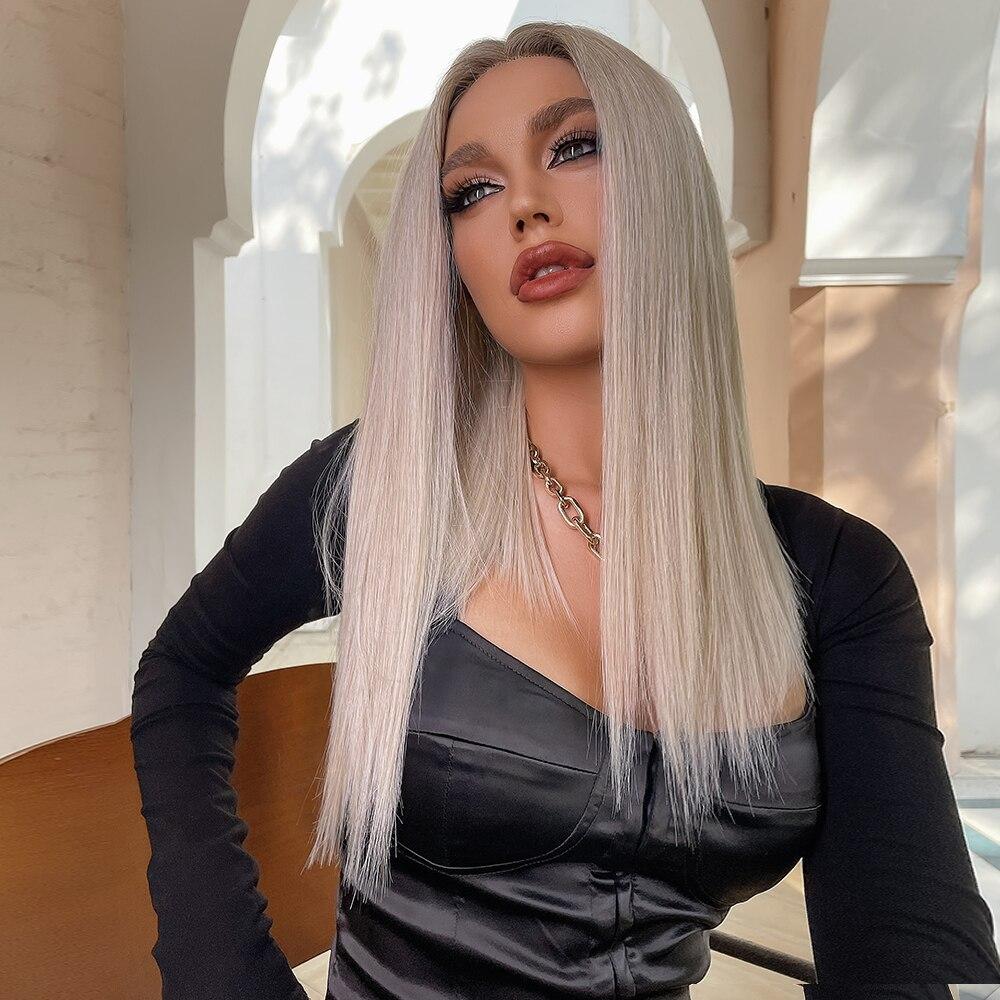 ALAN EATON Длинные прямые синтетические кружевные передние парики для женщин, средняя часть, платиновая блондинка, кружевные парики, термостойкое волокно