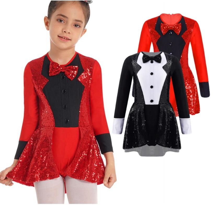 Детский костюм циркового манежа с длинными рукавами и блестками для девочек, современное трико для джазовых танцев, платье