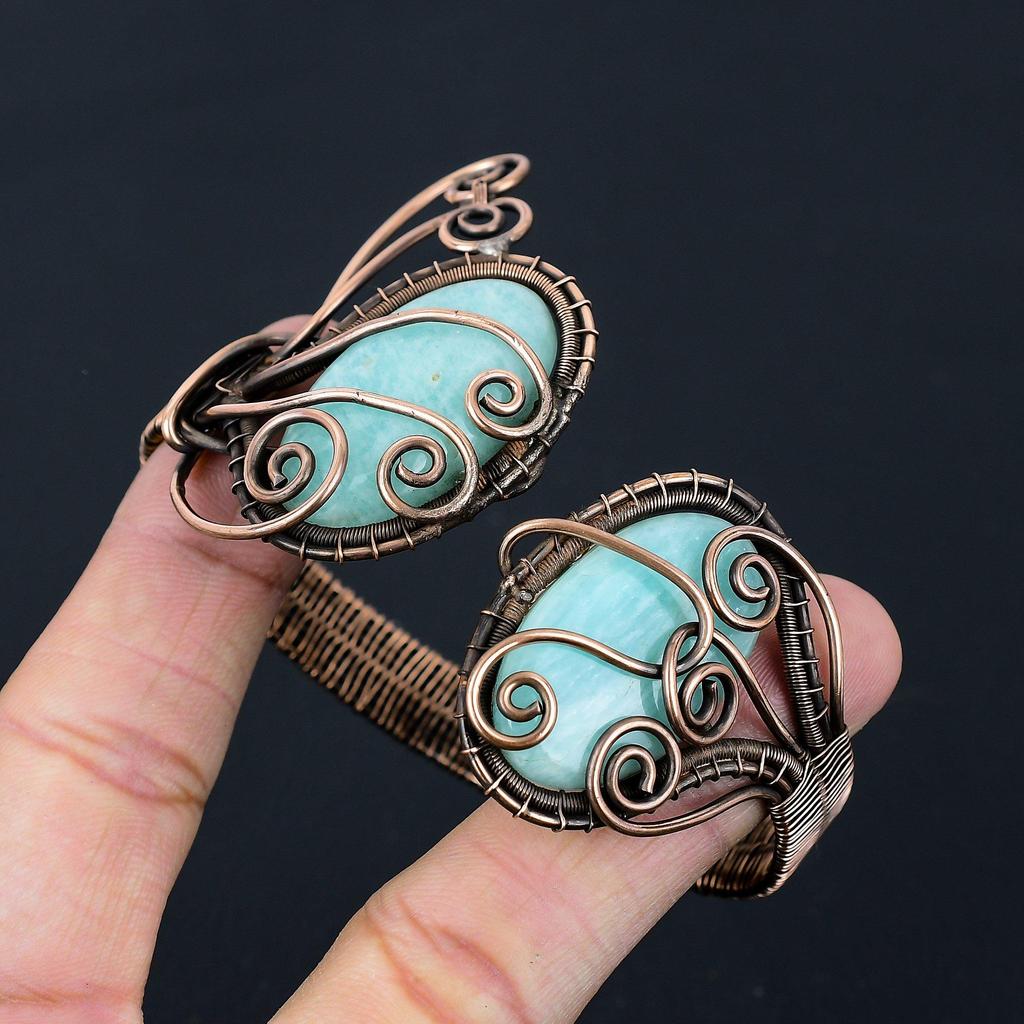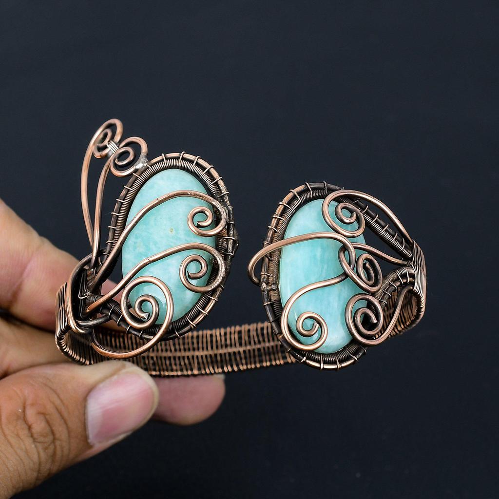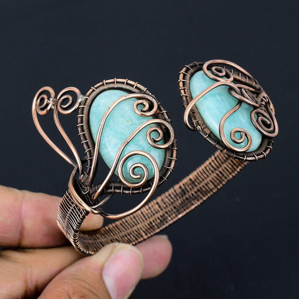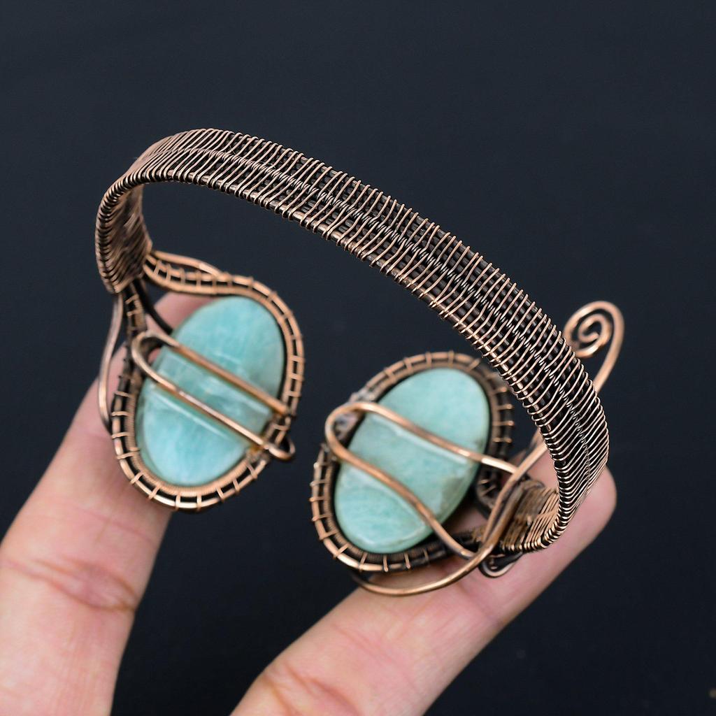 Амазонит драгоценный камень чистая медная проволока обернутая вручную манжета/браслет ювелирные изделия