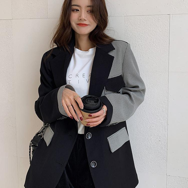 Клетчатый лоскутный пиджак для женщин, пальто, весенняя корейская модная одежда