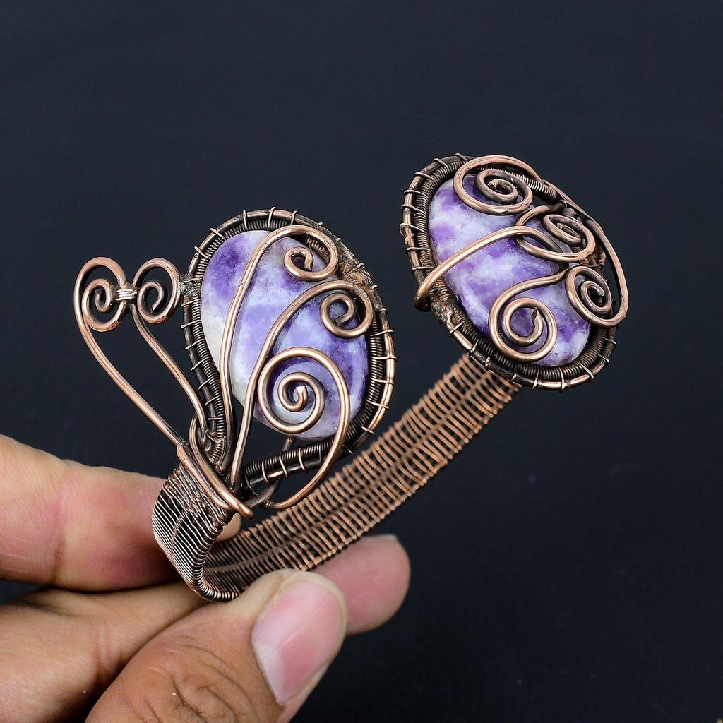 Шеврон Аметист Драгоценный камень Чистая медная проволока Обернутая манжета/браслет ручной работы Ювелирный подарок