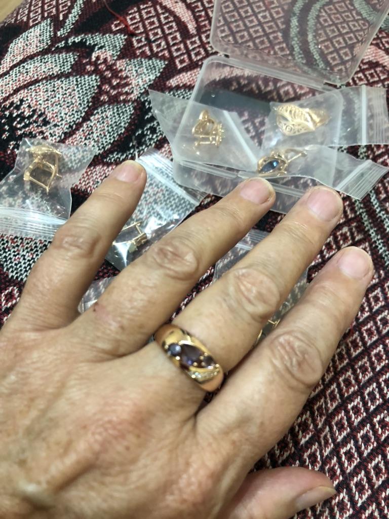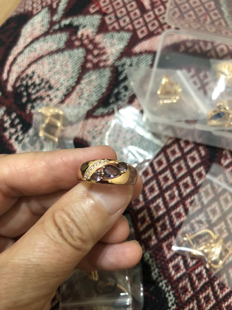 Кольцо замечательное, блестит и выглядит как золотое, камень переливается на солнышке, размер как раз подошёл,на17размер 7взяла.
