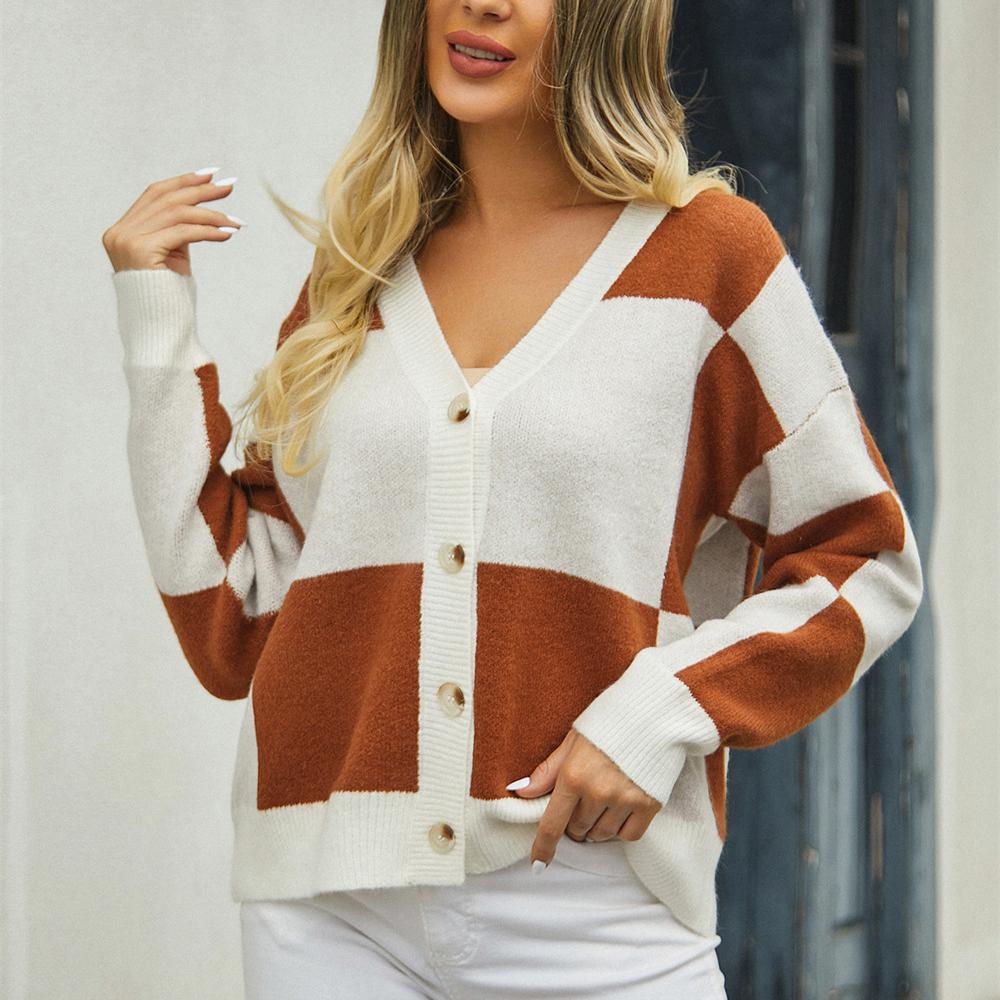 2023 осень/зима женский повседневный кардиган свитер клетчатый лоскутный свитер свободное пальто