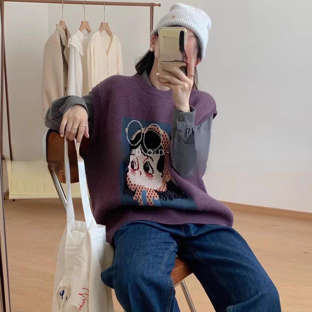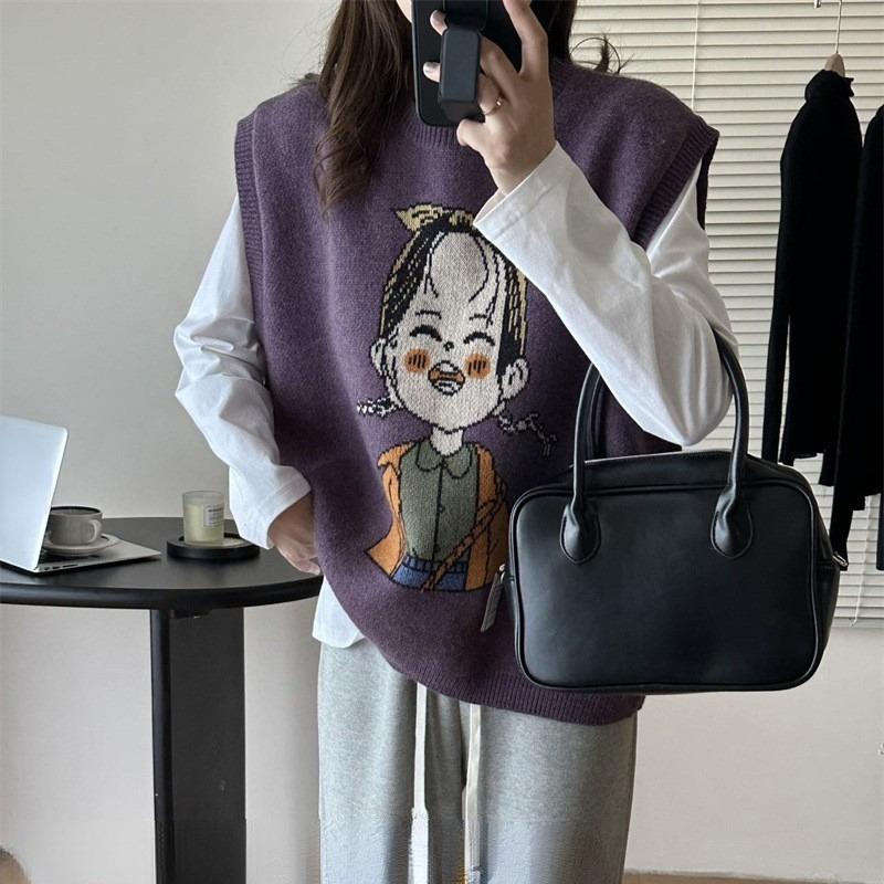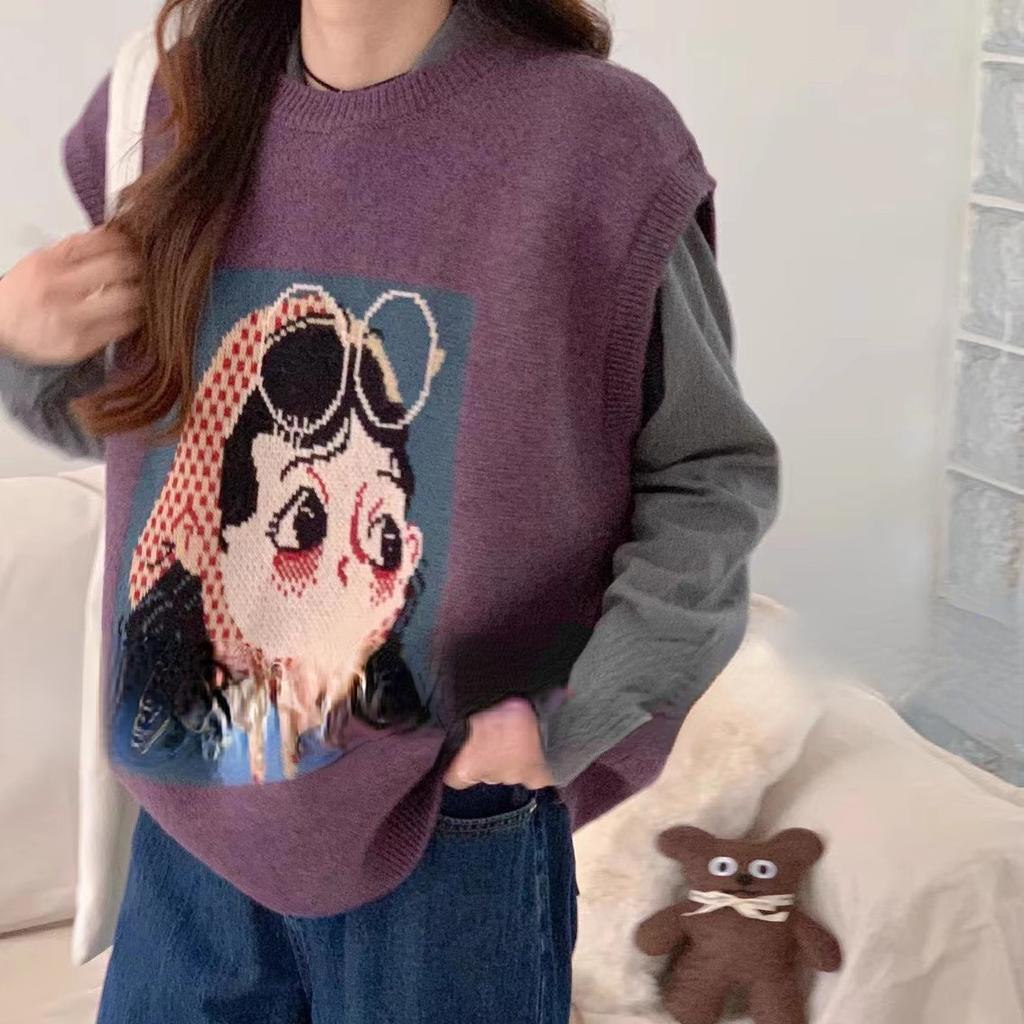 DIMANAF 2023 Жилет больших размеров большого размера Осенние женские свитера с узором и принтом Вязание Модные свободные свитера больших размеров Фиолетовый Базовый повседневный стиль Свободный свитер