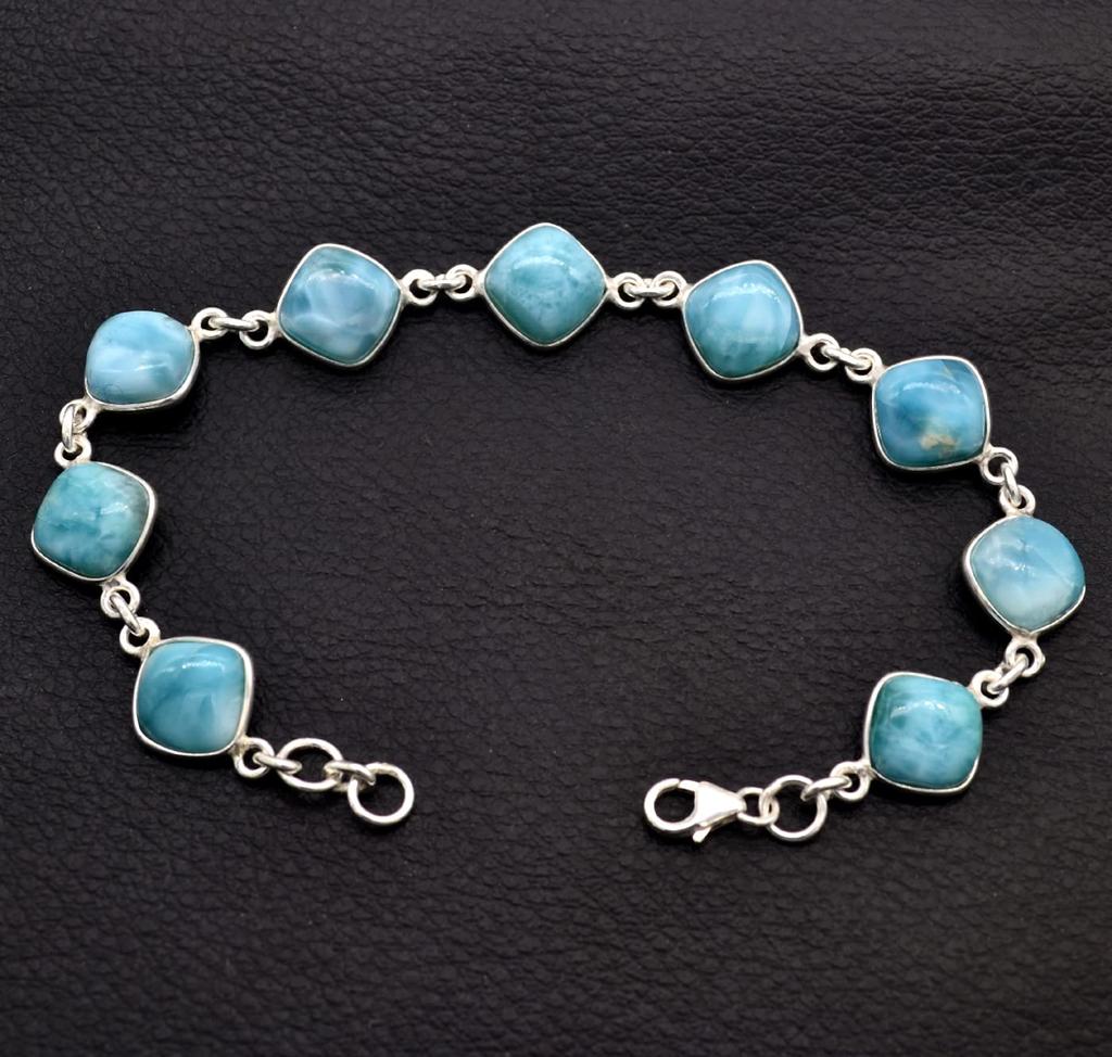 Браслет из натурального ларимара, Серебряный браслет 925 пробы, Подарок для нее, Женский браслет, Дизайнерский браслет, Подарок маме, Ювелирные изделия с камнем