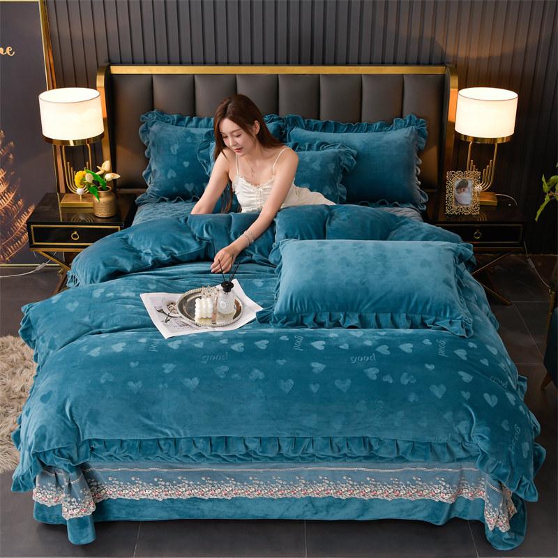 Тисненый бархатный стеганый кружевной комплект постельного белья King пододеяльник 220x240 комплект двуспального постельного белья с узором в виде сердца 4 шт. Queen 2 подушки Shams — купить товар онлайн с бесплатной доставкой до всему миру!