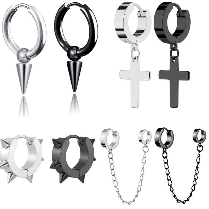 Серьги из нержавеющей стали, серьги-цепочки с крестом и полкой, серьги из нержавеющей стали с острым конусом, пряжка для ушей, пряжка для ушей, украшения для ушей