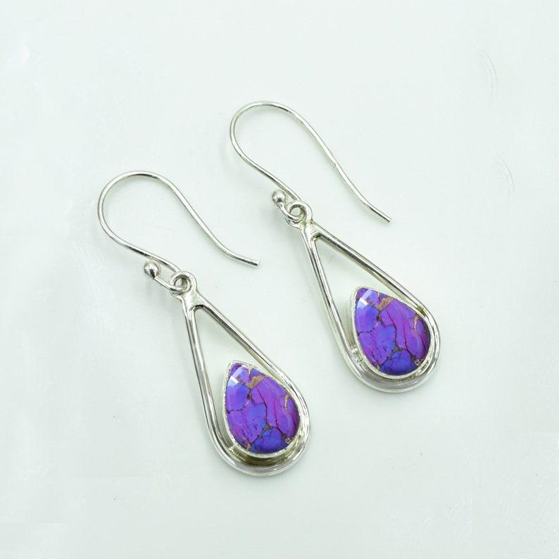 Серебро 925 пробы, фиолетовая бирюзовая серьга, созданная в лаборатории, ювелирные изделия ручной работы, серьги с подвесками, подарок на годовщину, серьга с рамкой, серьга для вечеринок