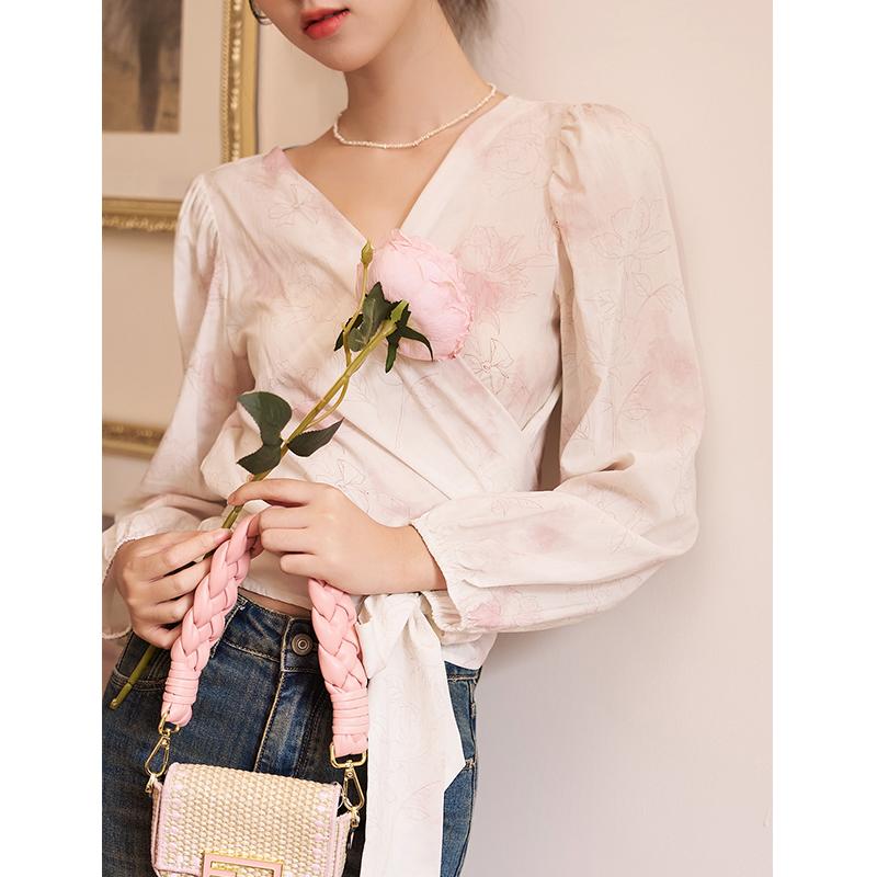 Женская рубашка MISHOW, осень 2023, винтажный женский пуловер с цветочным принтом во французском стиле, с v-образным вырезом и длинными рукавами на шнуровке, MXC41X1281 — купить товар онлайн с бесплатной доставкой по всему миру!