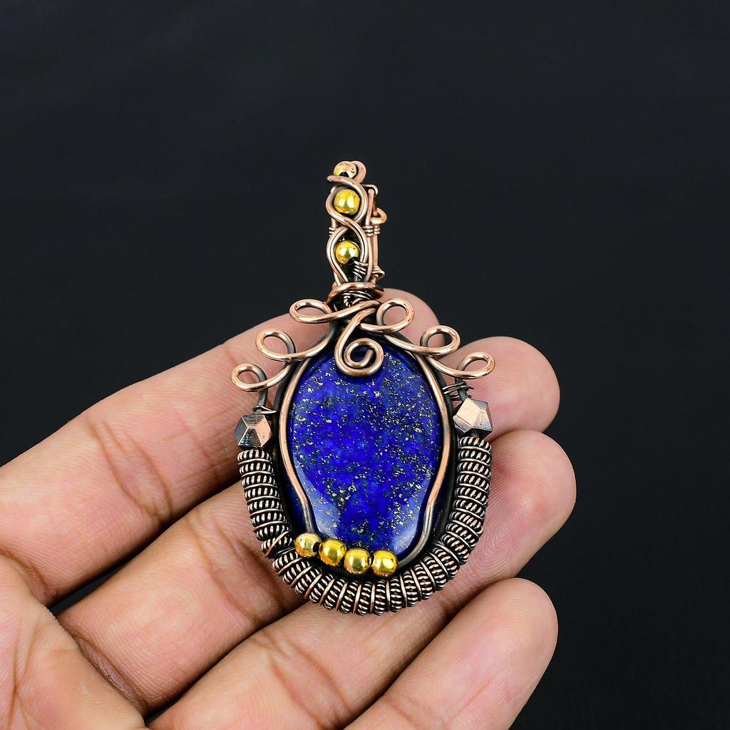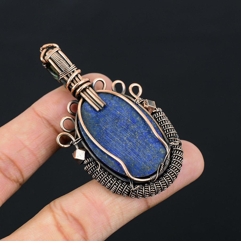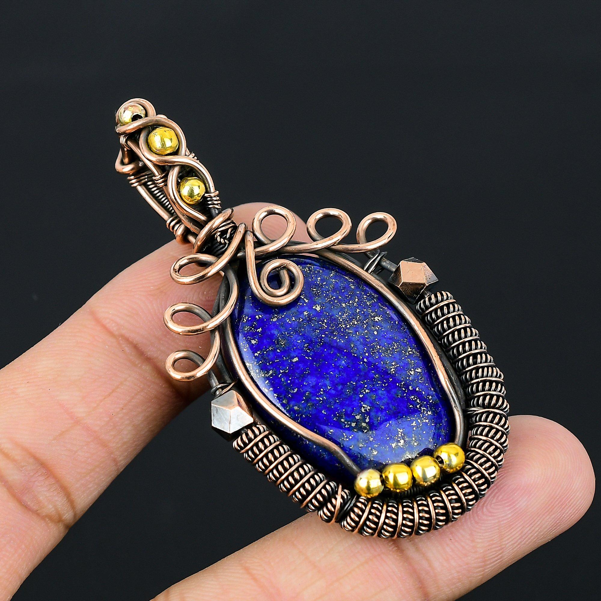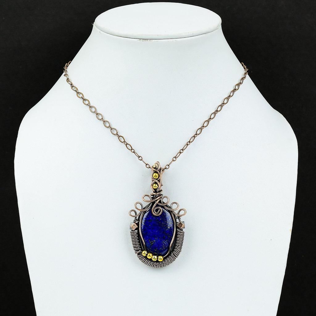 Драгоценный камень лазурит из чистой медной проволоки, обернутый подвеской ручной работы, ювелирное изделие для нее