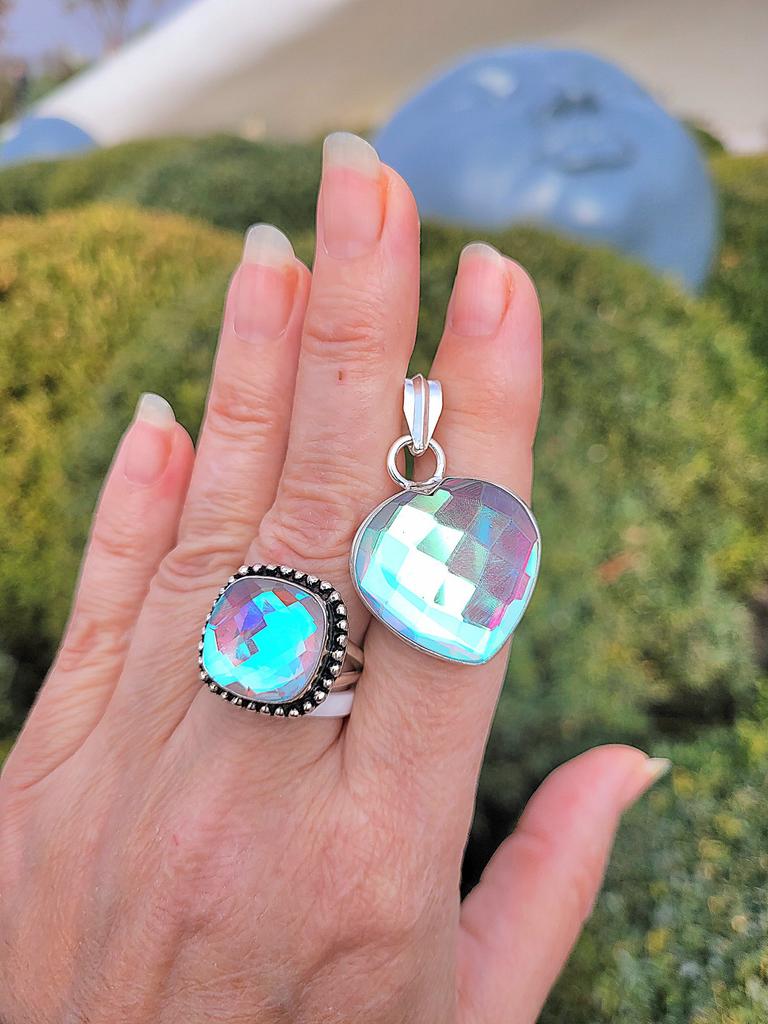 Радужный мистический топаз Gemstone 925 Solid Silver Ювелирные изделия ручной работы Необычный кулон