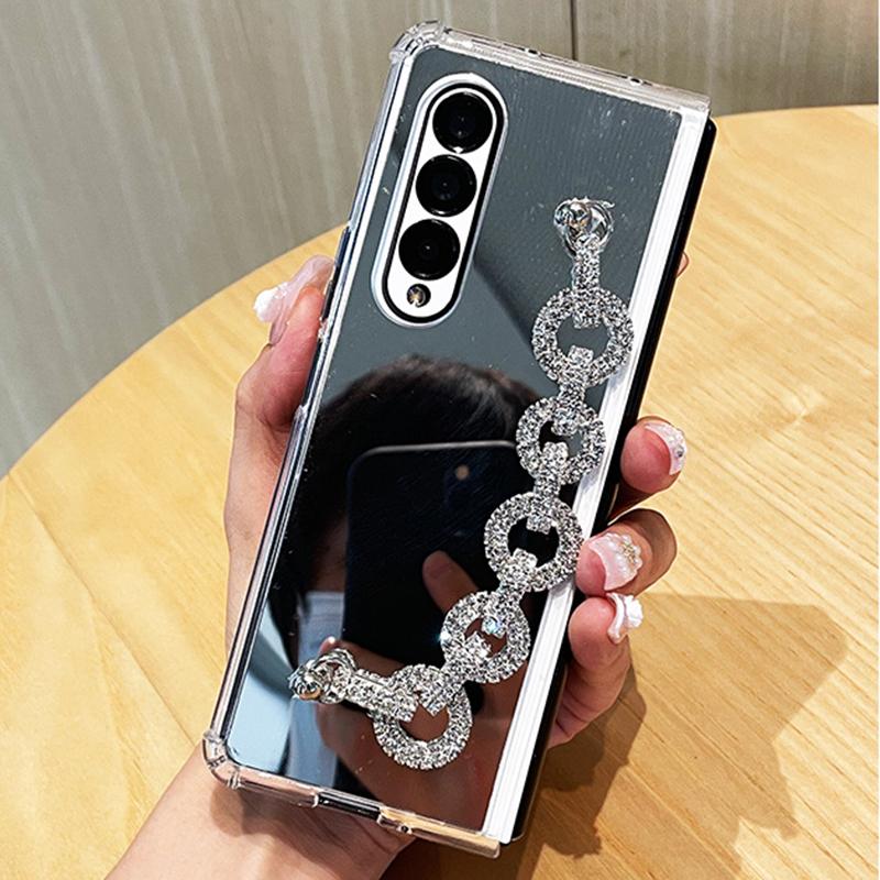Роскошный браслет со стразами, чехол для телефона Samsung Galaxy Z Fold 5 4 3 5G, зеркало для макияжа, мягкий противоударный чехол из ТПУ с рамкой для женщин