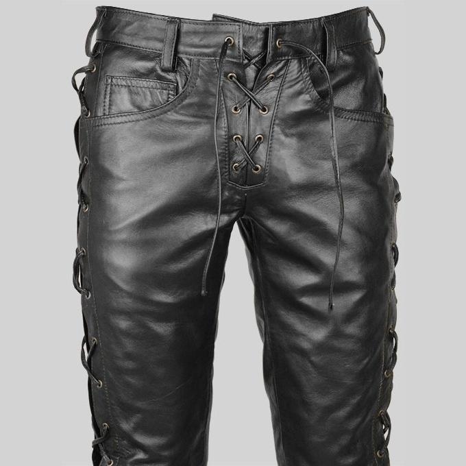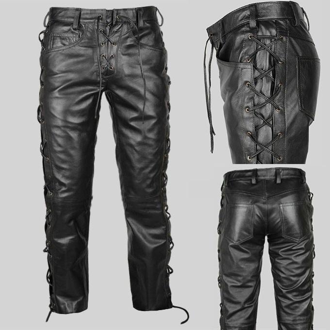Мужские мотоциклетные байкерские длинные брюки на шнуровке из синтетической кожи, брюки для ночного клуба
